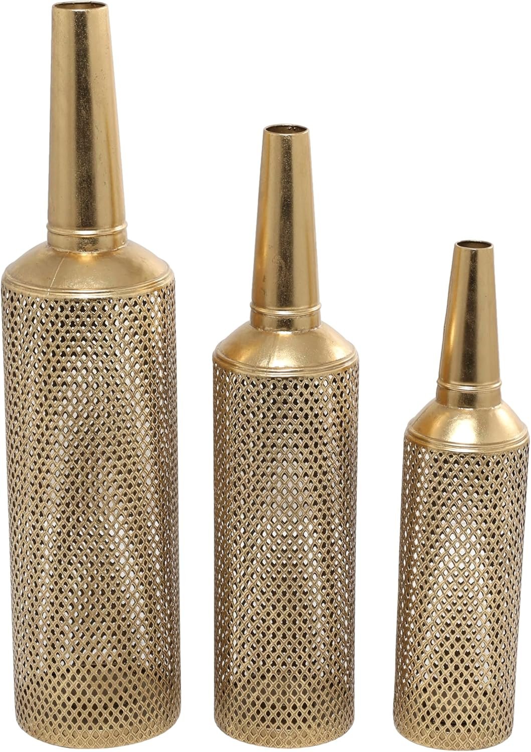 Metal Decorative Vase Diamond Patterned Centerpiece Vases with Open Frame Design, Set of 3 Vases for Home Decoration 30, 25, 21″ H, Gold
