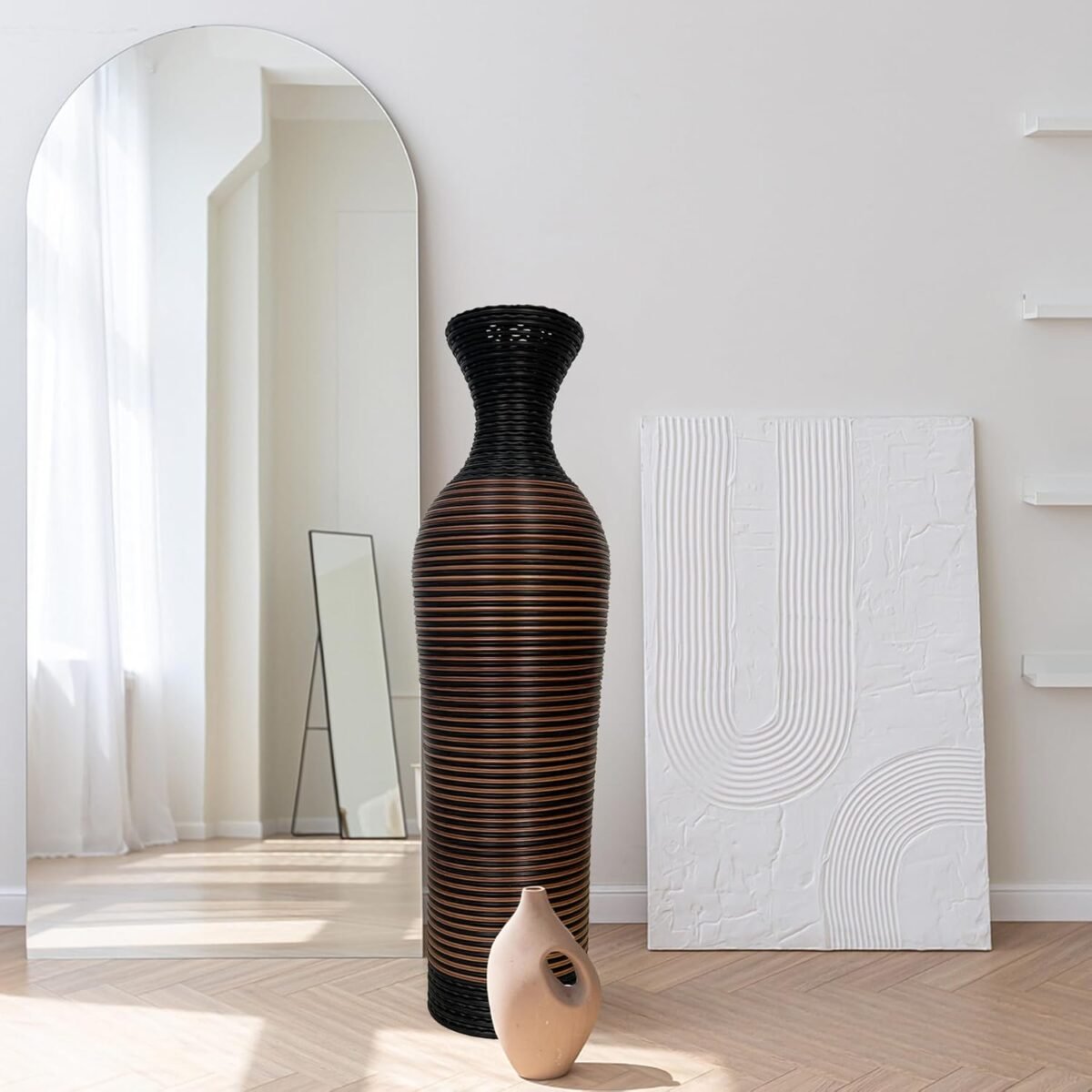 - Craftsmanship: The elegant floor vase is handcrafted by experienced craftsmen. It is tightly woven of high quality PVC Artificial Rattan on the outside and a solid wooden plywood skeleton on the inside. It is strong and not easily damaged