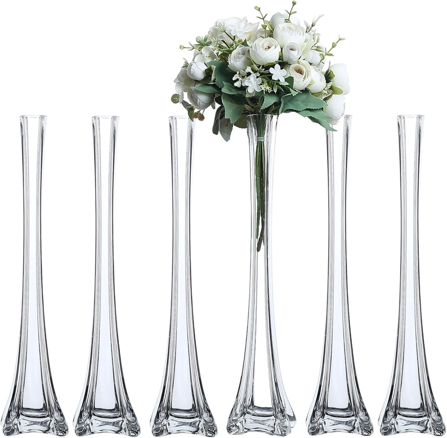 Tower Vase, Pack of 6, 20″ Clear Flower Vases Centerpiece for Flower, Wedding, Decoration. (20″, Clear)